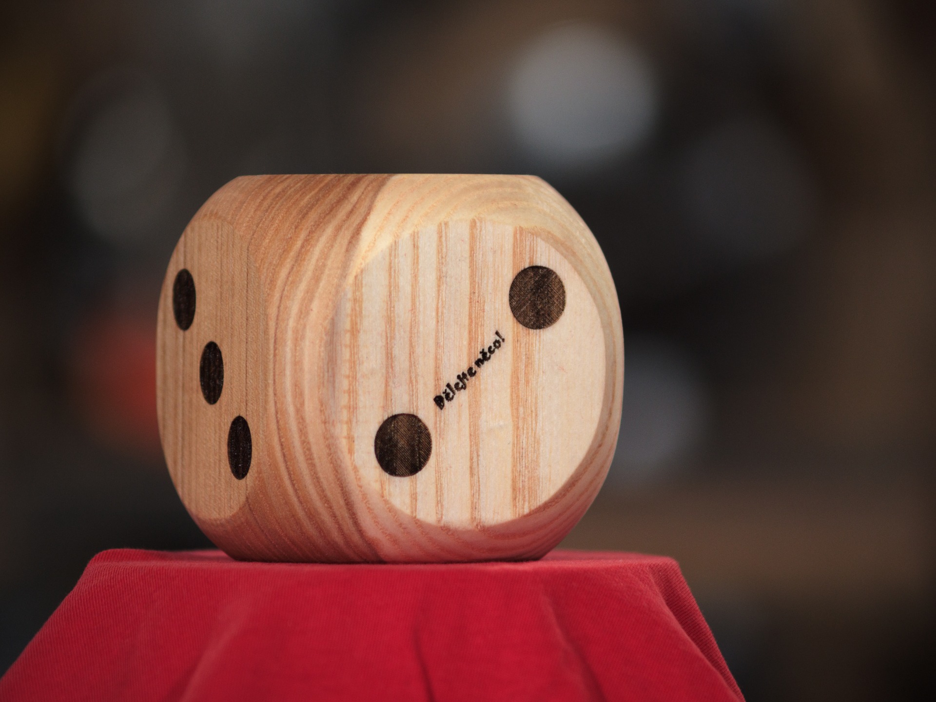 Klasická hrací kostka z dubového dřeva o straně cca 8 cm je perfektní pro hraní nejen stolních her (kostku nevrhejte, spíš koulejte po zemi, váží skoro půl kila).