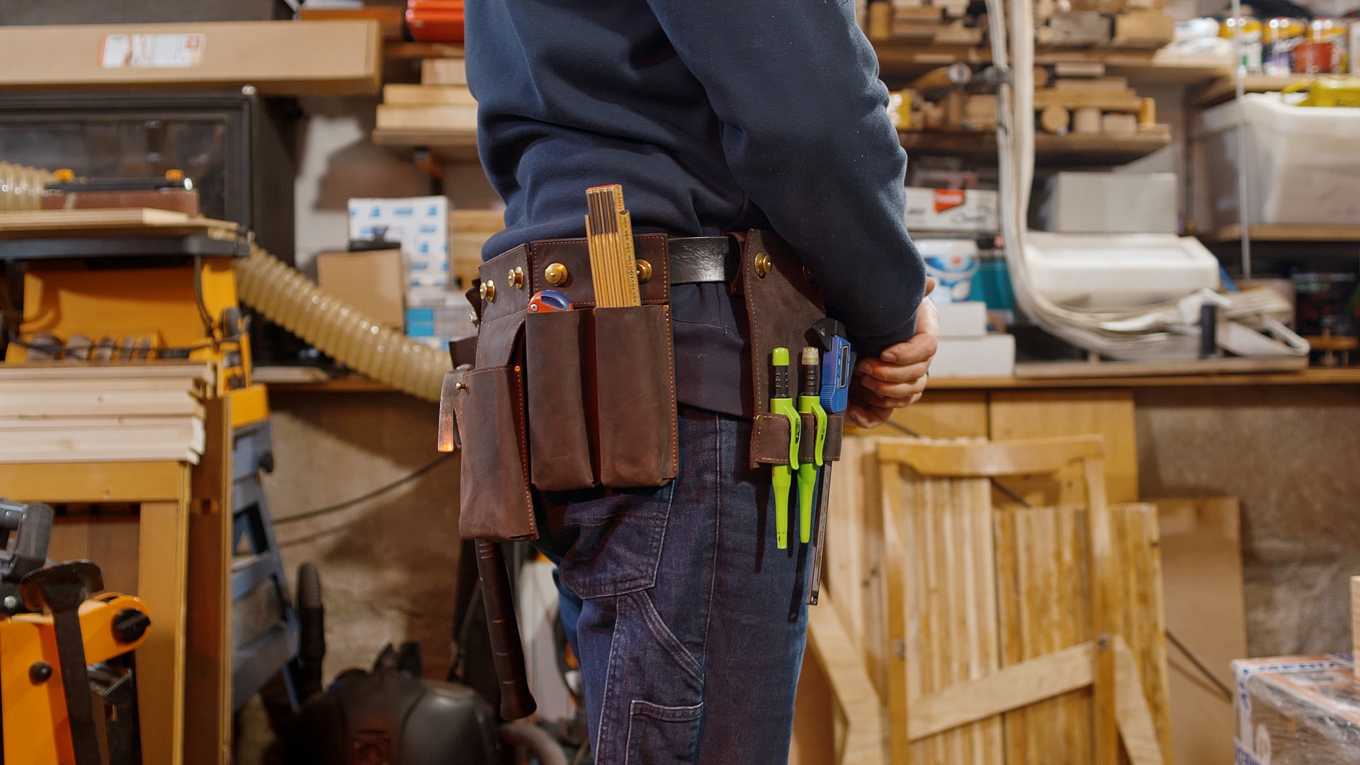 Kapsa se dvěma oddíly pro delší štíhlé předměty, jako je skládací metr, odlamovací nůž, šroubovák, ale třeba i kleště.